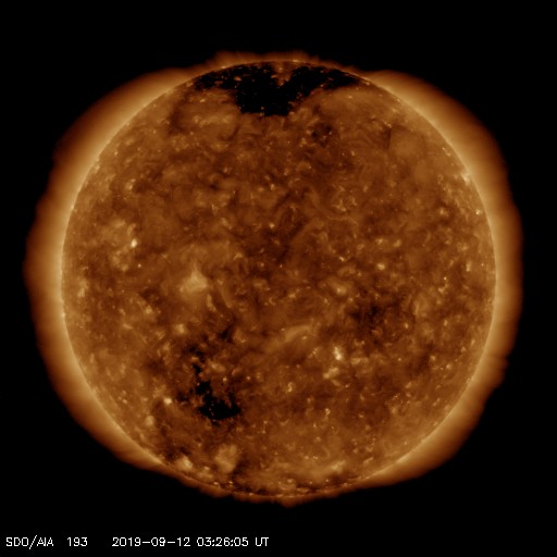 - 2019/ 9/ 9 12:46 太陽風は平均的な状態です。イエローナイフのオーロラをどうぞ。