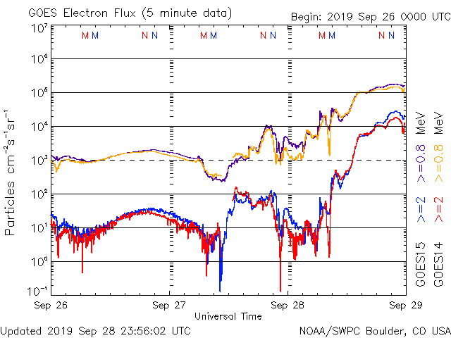 (c) NOAA/SWPC ![]() GOES衛星による、静止衛星軌道における高エネルギー電子の変化 (c) NOAA/SWPC ![]() | ||||||||||||||||||||||||||||||||||||||||||||||||||||||||||||||||||||||||||||||||||||||||||||||||||||||||||||||||||||||||||||||||||||||||||||||||||||||||||||||||||||||||||||||||||||||||||||||||||||||||||||||||