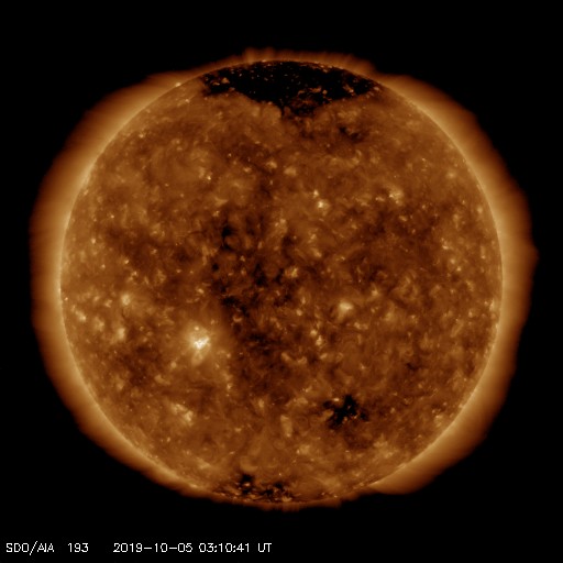 - 2019/10/ 2 12:20 黒点は2749群となっています。やや高速の太陽風が続いています。