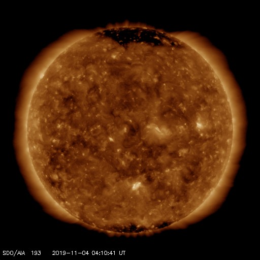 - 2019/11/ 2 12:25 南半球に黒点が見えています。太陽風はやや低速になっています。