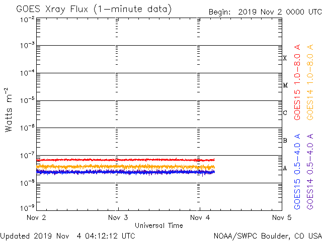 - 2019/11/ 3 13:03 太陽に新しい黒点が現れています。太陽風は低速になっています。