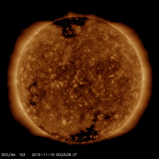SDO衛星AIA193では、太陽の低緯度域にコロナホールは見えず、