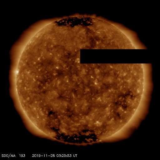 - 2019/11/25 12:06 太陽風は平均的な速度に下がっています。