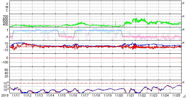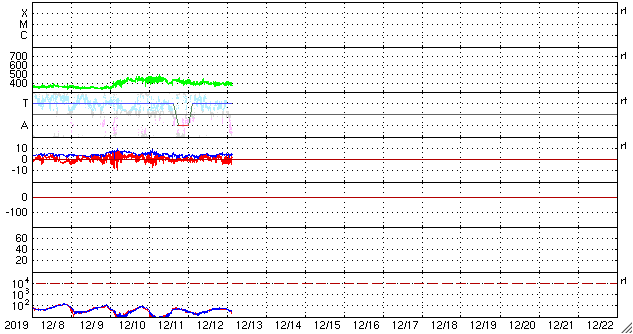 磁場強度も、4〜5nTと平均的な状態に戻っています。