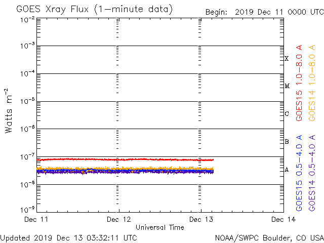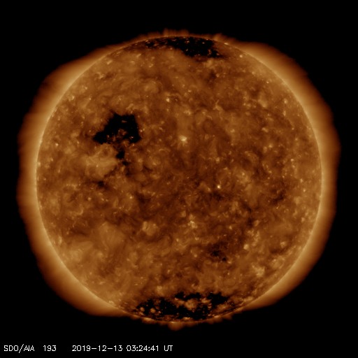 - 2019/12/ 9 12:27 低速の太陽風が続いています。太陽は無黒点です。