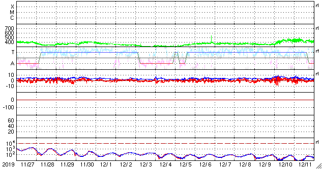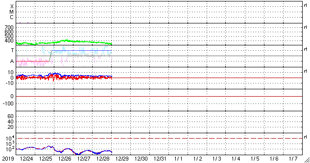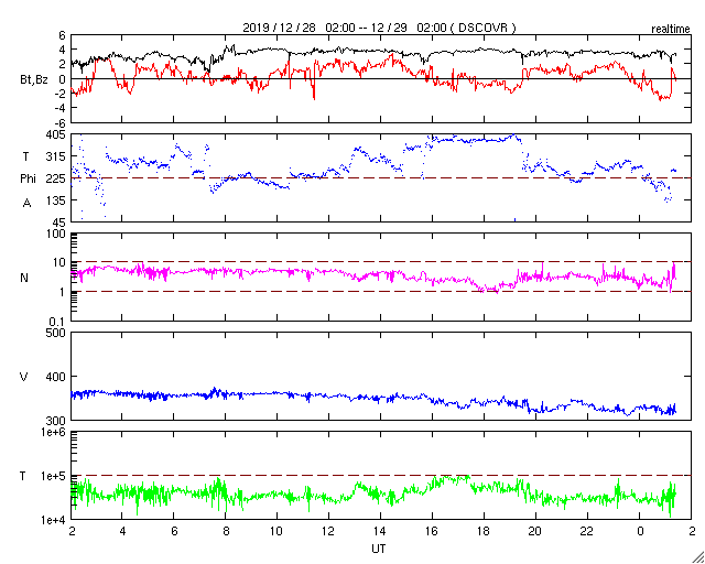- 2019/12/28 12:05 太陽風は低速になり、磁気圏も穏やかな状態が続いています。