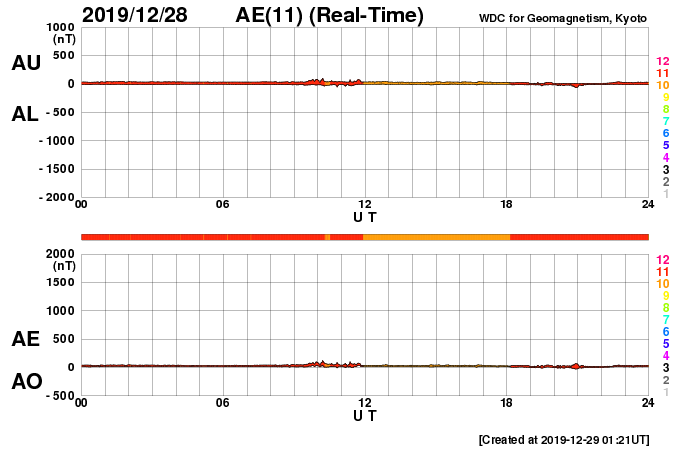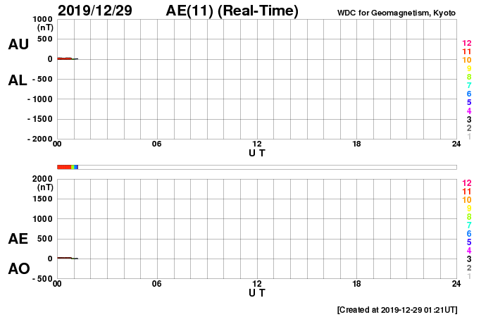 磁気圏も静穏で、AE指数はほとんど変化のない状態です。