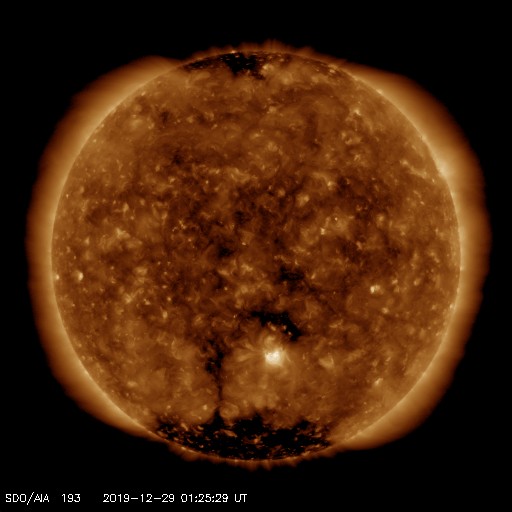 - 2019/12/27 09:39 太陽は無黒点に戻っています。太陽風は平均的な状態です。