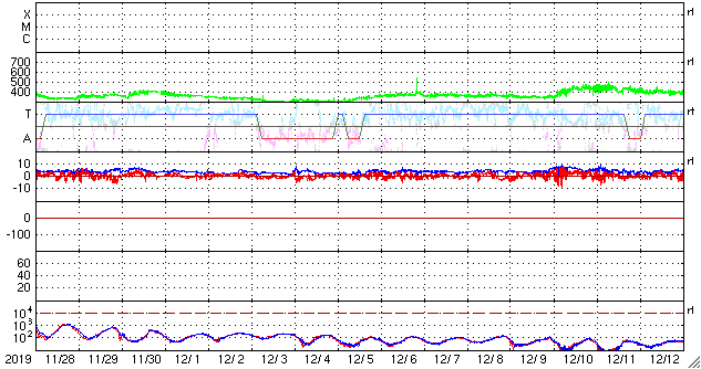 - 2019/12/28 12:05 太陽風は低速になり、磁気圏も穏やかな状態が続いています。