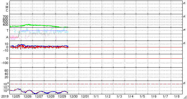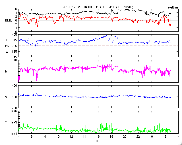 - 2019/12/29 10:40 太陽風は低速の状態が続いています。磁気圏もとても静かです。