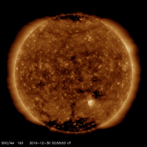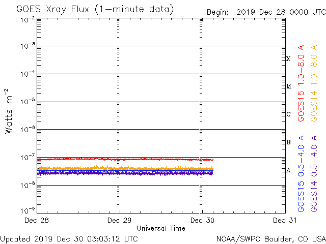 - 2019/12/27 09:39 太陽は無黒点に戻っています。太陽風は平均的な状態です。