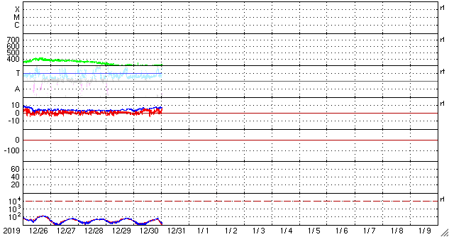 磁場強度は5〜7nTへ少し強まる変化が見えていますが、