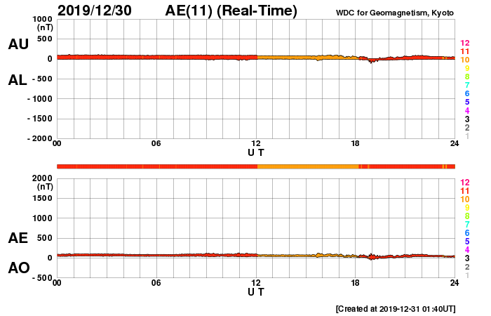 下段のAEグラフの値が高くなると、オーロラ活動が活発化しています。