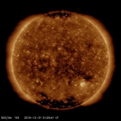 SDO衛星AIA193では、北極と南極にコロナホールが見える程度で、