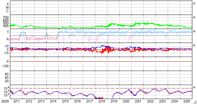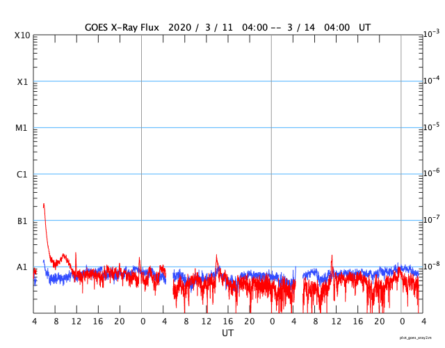GOES衛星の太陽X線強度。赤・橙 = 0.1〜0.8 nm、青・紫 = 0.05〜0.4 nm (c) データ:NOAA/SWPC、作図:宇宙天気ニュース ![]() | ||||||||||||||||||||||||||||||||||||||||||||||||||||||||||||||||||||||||||||||||||||||||||||||||||||||||||||||||||||||||||||||||||||||||||||||||||||||||||||||||||||||||||||||||||||||||||||||||||||||||||||||