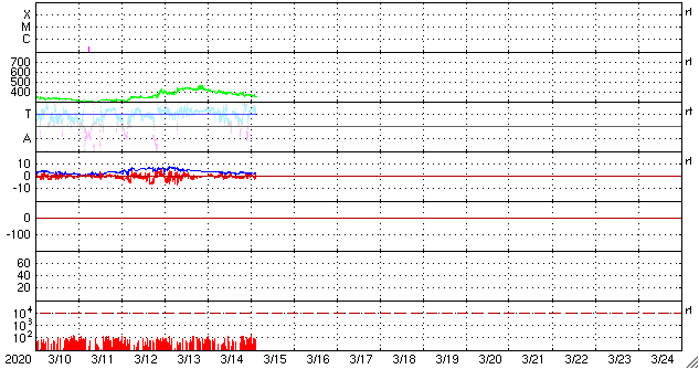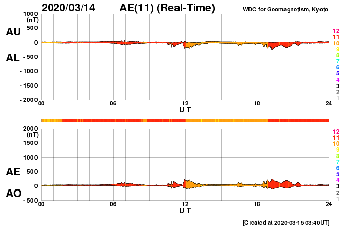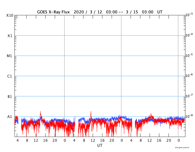 GOES衛星の太陽X線強度。赤・橙 = 0.1〜0.8 nm、青・紫 = 0.05〜0.4 nm (c) データ:NOAA/SWPC、作図:宇宙天気ニュース ![]() | ||||||||||||||||||||||||||||||||||||||||||||||||||||||||||||||||||||||||||||||||||||||||||||||||||||||||||||||||||||||||||||||||||||||||||||||||||||||||||||||||||||||||||||||||||||||||||||||||||||||||||||||