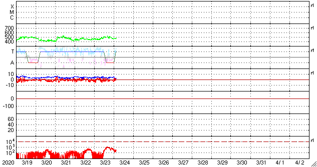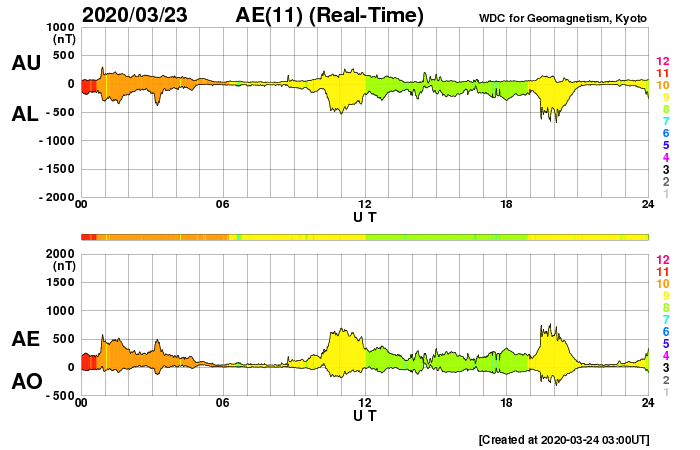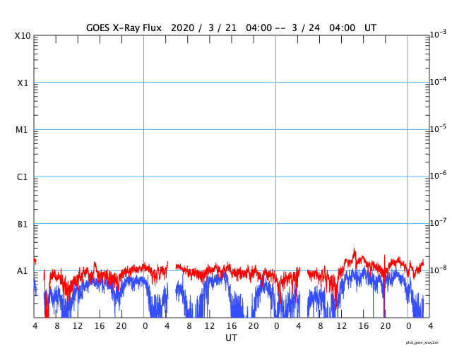 GOES衛星の太陽X線強度。赤・橙 = 0.1〜0.8 nm、青・紫 = 0.05〜0.4 nm (c) データ:NOAA/SWPC、作図:宇宙天気ニュース ![]() | ||||||||||||||||||||||||||||||||||||||||||||||||||||||||||||||||||||||||||||||||||||||||||||||||||||||||||||||||||||||||||||||||||||||||||||||||||||||||||||||||||||||||||||||||||||||||||||||||||||||||||||