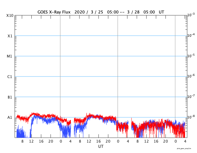 GOES衛星の太陽X線強度。赤・橙 = 0.1〜0.8 nm、青・紫 = 0.05〜0.4 nm (c) データ:NOAA/SWPC、作図:宇宙天気ニュース ![]() | ||||||||||||||||||||||||||||||||||||||||||||||||||||||||||||||||||||||||||||||||||||||||||||||||||||||||||||||||||||||||||||||||||||||||||||||||||||||||||||||||||||||||||||||||||||||||||||||||||||||||||||||
