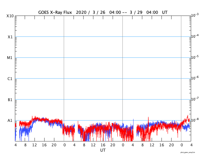 GOES衛星の太陽X線強度。赤・橙 = 0.1〜0.8 nm、青・紫 = 0.05〜0.4 nm (c) データ:NOAA/SWPC、作図:宇宙天気ニュース ![]() | ||||||||||||||||||||||||||||||||||||||||||||||||||||||||||||||||||||||||||||||||||||||||||||||||||||||||||||||||||||||||||||||||||||||||||||||||||||||||||||||||||||||||||||||||||||||||||||||||||||||||||||