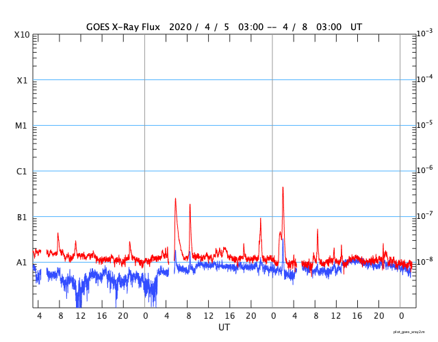 GOES衛星の太陽X線強度。赤・橙 = 0.1〜0.8 nm、青・紫 = 0.05〜0.4 nm (c) データ:NOAA/SWPC、作図:宇宙天気ニュース ![]() | |||||||||||||||||||||||||||||||||||||||||||||||||||||||||||||||||||||||||||||||||||||||||||||||||||||||||||||||||||||||||||||||||||||||||||||||||||||||||||||||||||||||||||||||||||||||||||||||||||||||||