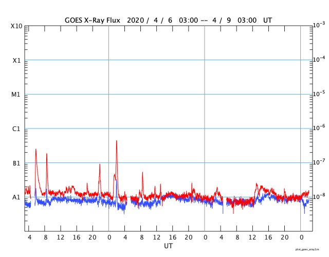GOES衛星の太陽X線強度。赤・橙 = 0.1〜0.8 nm、青・紫 = 0.05〜0.4 nm (c) データ:NOAA/SWPC、作図:宇宙天気ニュース ![]() | |||||||||||||||||||||||||||||||||||||||||||||||||||||||||||||||||||||||||||||||||||||||||||||||||||||||||||||||||||||||||||||||||||||||||||||||||||||||||||||||||||||||||||||||||||||||||||||||||||||||||