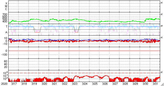 GOES衛星の太陽X線強度。赤・橙 = 0.1〜0.8 nm、青・紫 = 0.05〜0.4 nm (c) データ:NOAA/SWPC、作図:宇宙天気ニュース ![]() | |||||||||||||||||||||||||||||||||||||||||||||||||||||||||||||||||||||||||||||||||||||||||||||||||||||||||||||||||||||||||||||||||||||||||||||||||||||||||||||||||||||||||||||||||||||||||||||||||||||||||