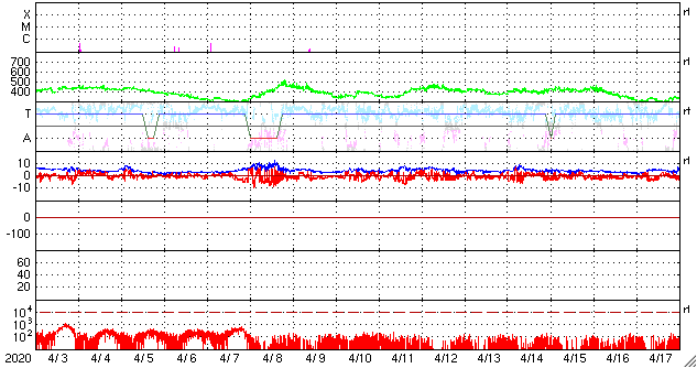 磁場強度は、5nTから3〜4nTに少し下がり気味です。