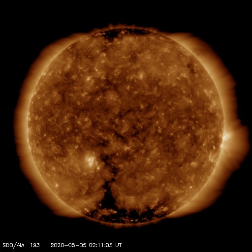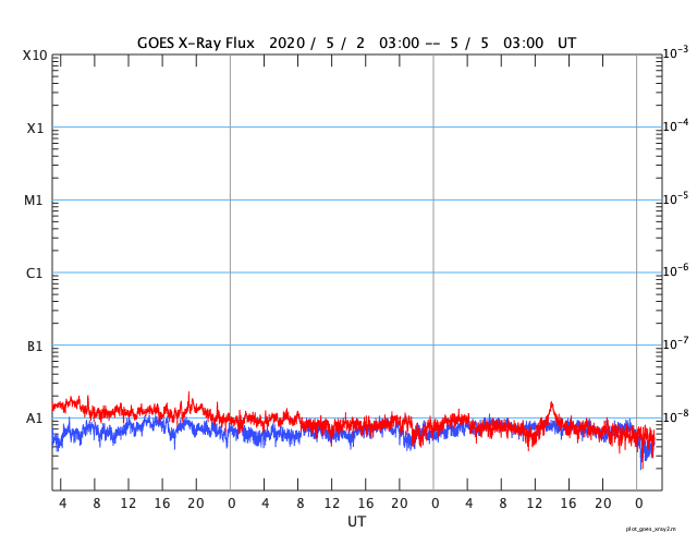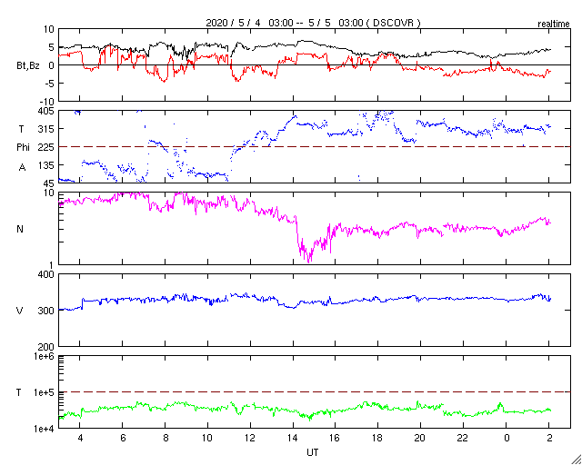 2020/ 5/ 2 13:01 太陽は無黒点になりそうです。低速の太陽風が続いています。
