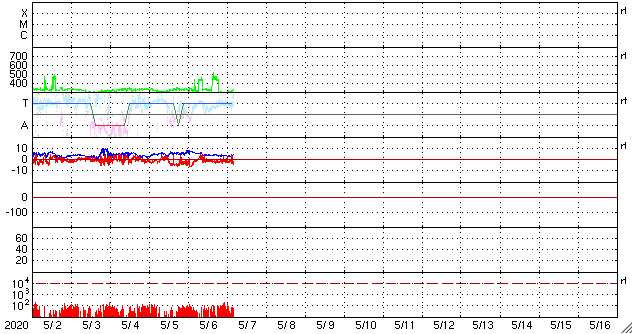 - 2020/ 5/ 5 11:19 太陽は無黒点になっています。太陽風は低速で、磁気圏も穏やかです。