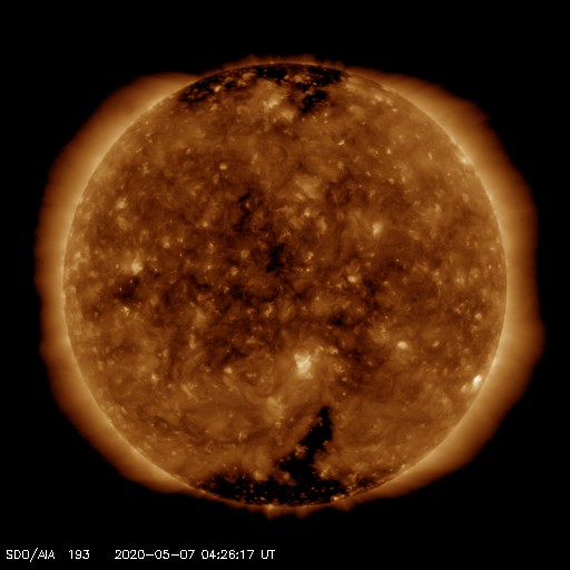 SDO衛星AIA193では、低緯度域にコロナホールは見られず、