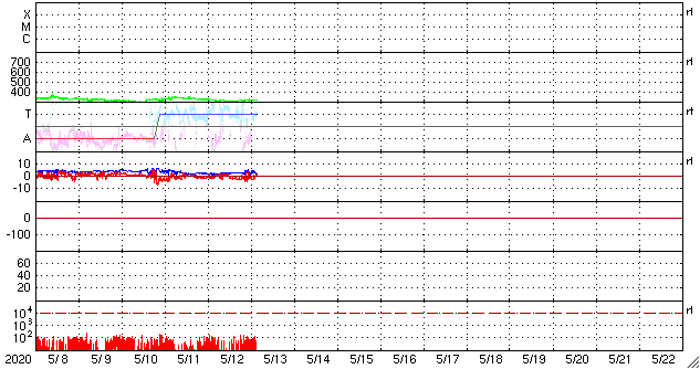 2020/ 5/12 12:00 低速の太陽風が続いています。磁気圏も穏やかです。