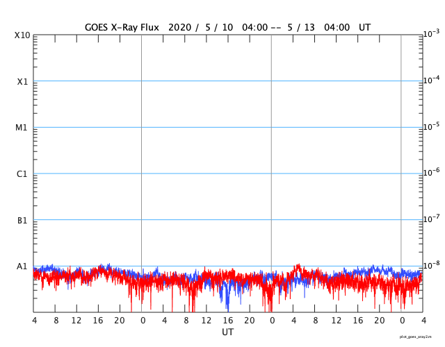 2020/ 5/ 9 12:51 太陽風は低速で、磁気圏も穏やかです。