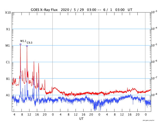 GOES衛星の太陽X線強度。赤・橙 = 0.1〜0.8 nm、青・紫 = 0.05〜0.4 nm (c) データ:NOAA/SWPC、作図:宇宙天気ニュース ![]() | |||||||||||||||||||||||||||||||||||||||||||||||||||||||||||||||||||||||||||||||||||||||||||||||||||||||||||||||||||||||||||||||||||||||||||||||||||||||||||||||||||||||||||||||||||||||||||||||||||||||||||