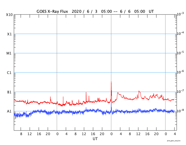 GOES衛星の太陽X線強度。赤・橙 = 0.1〜0.8 nm、青・紫 = 0.05〜0.4 nm (c) データ:NOAA/SWPC、作図:宇宙天気ニュース ![]() | |||||||||||||||||||||||||||||||||||||||||||||||||||||||||||||||||||||||||||||||||||||||||||||||||||||||||||||||||||||||||||||||||||||||||||||||||||||||||||||||||||||||||||||||||||||||||||||||||||||||||||