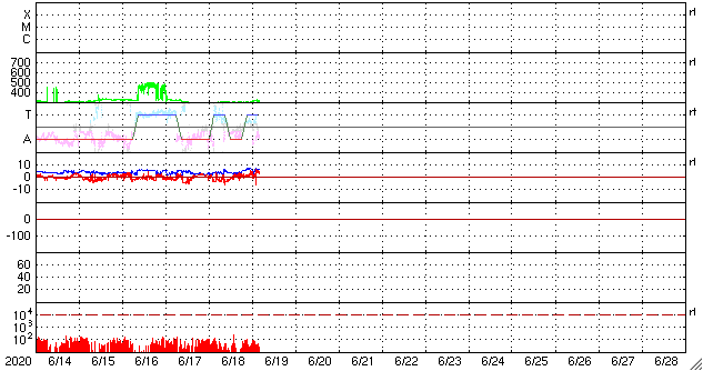- 2020/ 6/17 11:26 太陽風は低速の状態が続き、磁気圏も穏やかです。