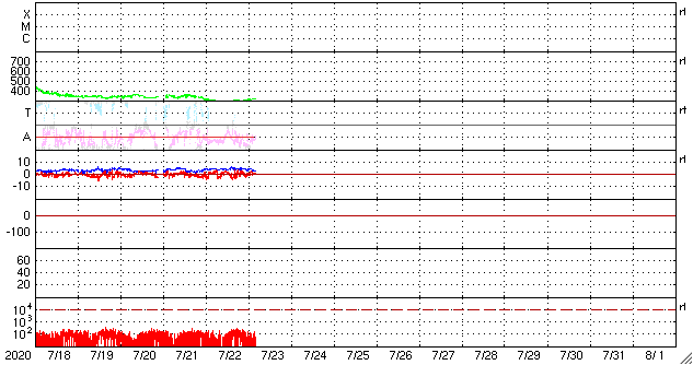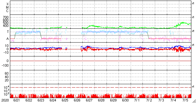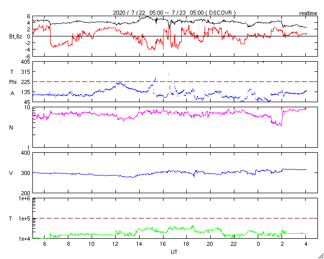 2020/ 7/20 14:02 低速の太陽風が続き、磁気圏も穏やかです。