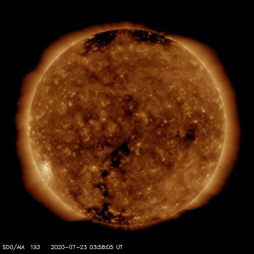 縦に伸びるコロナホールも見えています。