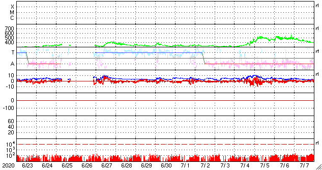 2020/ 7/23 13:11 低速の太陽風が続き、磁気圏も穏やかです。