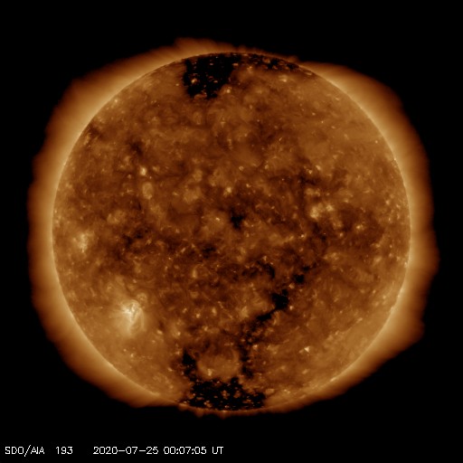 2020/ 7/22 13:45 太陽の南東に新しい黒点が現れています。太陽風は更に低速になっています。