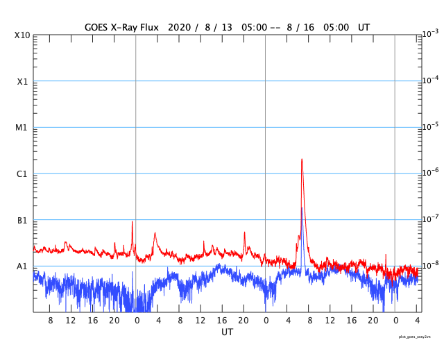 GOES衛星の太陽X線強度。赤・橙 = 0.1〜0.8 nm、青・紫 = 0.05〜0.4 nm (c) データ:NOAA/SWPC、作図:宇宙天気ニュース ![]() | |||||||||||||||||||||||||||||||||||||||||||||||||||||||||||||||||||||||||||||||||||||||||||||||||||||||||||||||||||||||||||||||||||||||||||||||||||||||||||||||||||||||||||||||||||||||||||||||||||||||||
