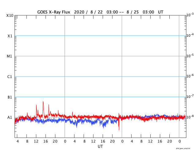 GOES衛星の太陽X線強度。赤・橙 = 0.1〜0.8 nm、青・紫 = 0.05〜0.4 nm (c) データ:NOAA/SWPC、作図:宇宙天気ニュース ![]() | |||||||||||||||||||||||||||||||||||||||||||||||||||||||||||||||||||||||||||||||||||||||||||||||||||||||||||||||||||||||||||||||||||||||||||||||||||||||||||||||||||||||||||||||||||||||||||||||||||||||||||