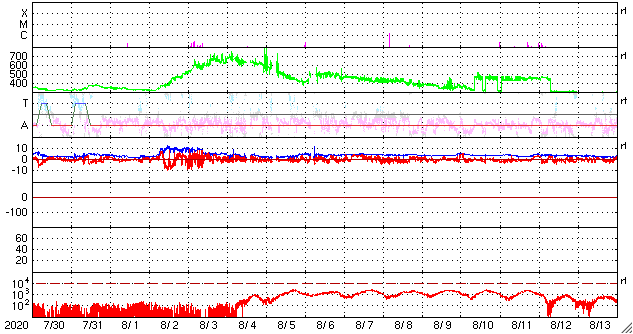 GOES衛星の太陽X線強度。赤・橙 = 0.1〜0.8 nm、青・紫 = 0.05〜0.4 nm (c) データ:NOAA/SWPC、作図:宇宙天気ニュース ![]() | |||||||||||||||||||||||||||||||||||||||||||||||||||||||||||||||||||||||||||||||||||||||||||||||||||||||||||||||||||||||||||||||||||||||||||||||||||||||||||||||||||||||||||||||||||||||||||||||||||||||||