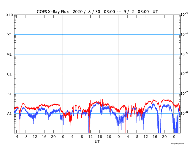 GOES衛星の太陽X線強度。赤・橙 = 0.1〜0.8 nm、青・紫 = 0.05〜0.4 nm (c) データ:NOAA/SWPC、作図:宇宙天気ニュース ![]() | |||||||||||||||||||||||||||||||||||||||||||||||||||||||||||||||||||||||||||||||||||||||||||||||||||||||||||||||||||||||||||||||||||||||||||||||||||||||||||||||||||||||||||||||||||||||||||||||||||||||||||
