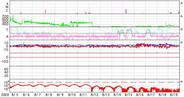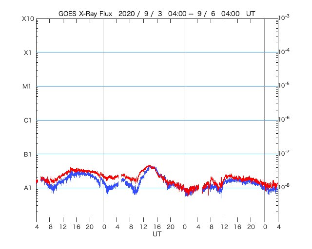 GOES衛星の太陽X線強度。赤・橙 = 0.1〜0.8 nm、青・紫 = 0.05〜0.4 nm (c) データ:NOAA/SWPC、作図:宇宙天気ニュース ![]() | |||||||||||||||||||||||||||||||||||||||||||||||||||||||||||||||||||||||||||||||||||||||||||||||||||||||||||||||||||||||||||||||||||||||||||||||||||||||||||||||||||||||||||||||||||||||||||||||||||||||||