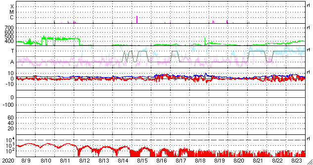GOES衛星の太陽X線強度。赤・橙 = 0.1〜0.8 nm、青・紫 = 0.05〜0.4 nm (c) データ:NOAA/SWPC、作図:宇宙天気ニュース ![]() | |||||||||||||||||||||||||||||||||||||||||||||||||||||||||||||||||||||||||||||||||||||||||||||||||||||||||||||||||||||||||||||||||||||||||||||||||||||||||||||||||||||||||||||||||||||||||||||||||||||||||