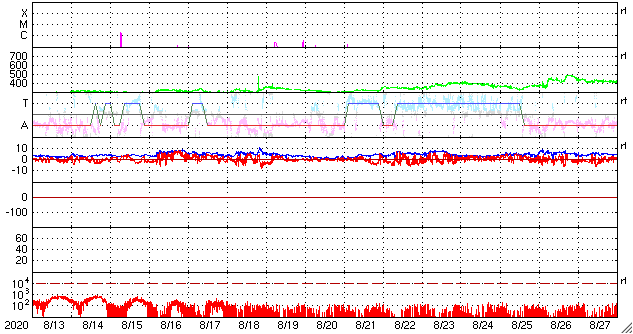 GOES衛星の太陽X線強度。赤・橙 = 0.1〜0.8 nm、青・紫 = 0.05〜0.4 nm (c) データ:NOAA/SWPC、作図:宇宙天気ニュース ![]() | |||||||||||||||||||||||||||||||||||||||||||||||||||||||||||||||||||||||||||||||||||||||||||||||||||||||||||||||||||||||||||||||||||||||||||||||||||||||||||||||||||||||||||||||||||||||||||||||||||||||||||