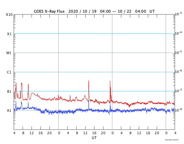 GOES衛星の太陽X線強度。赤・橙 = 0.1〜0.8 nm、青・紫 = 0.05〜0.4 nm (c) データ:NOAA/SWPC、作図:宇宙天気ニュース ![]() | |||||||||||||||||||||||||||||||||||||||||||||||||||||||||||||||||||||||||||||||||||||||||||||||||||||||||||||||||||||||||||||||||||||||||||||||||||||||||||||||||||||||||||||||||||||||||||||||||||||||||||
