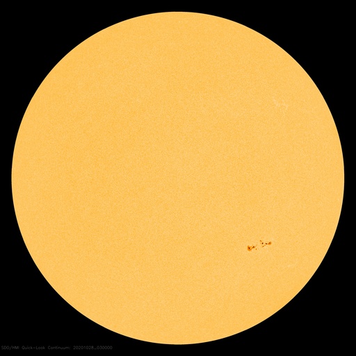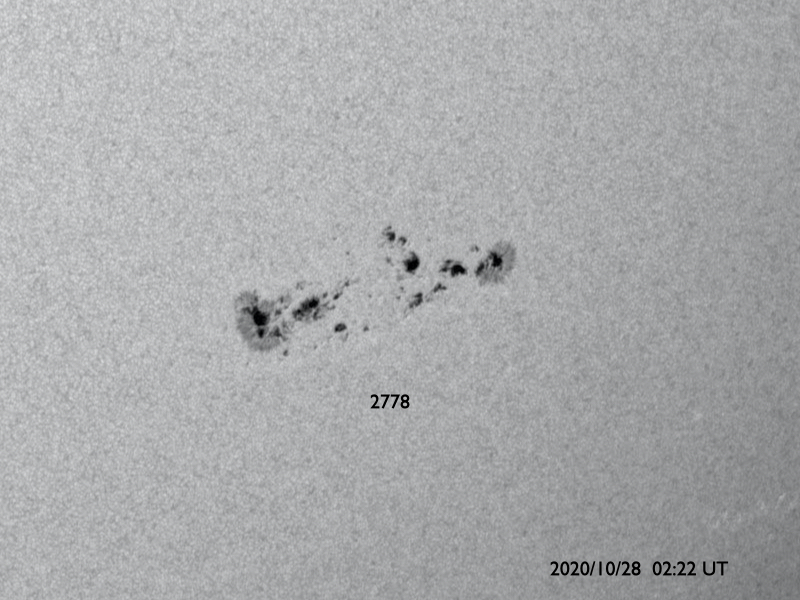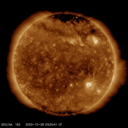 2020/10/26 11:59 太陽に新しい黒点が現れています。高速の太陽風が続いています。