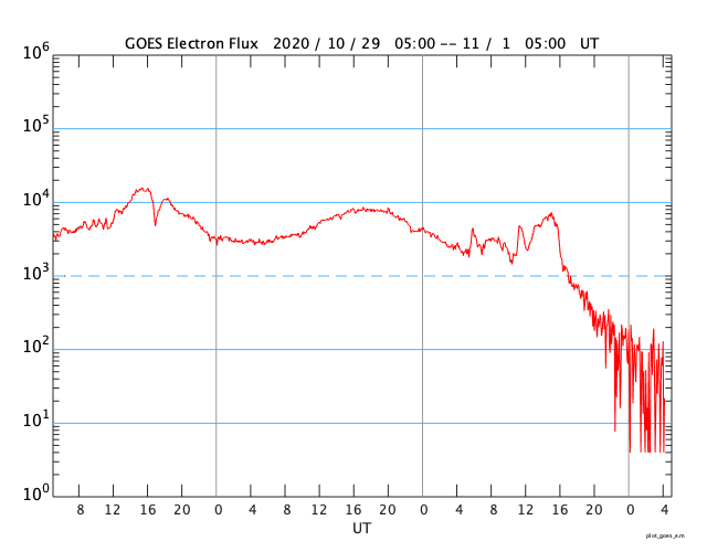 GOES衛星の太陽X線強度。赤・橙 = 0.1〜0.8 nm、青・紫 = 0.05〜0.4 nm (c) データ:NOAA/SWPC、作図:宇宙天気ニュース ![]() GOES衛星による、静止衛星軌道における高エネルギー電子 ( 2 MeV 以上 ) の変化 (c) データ:NOAA/SWPC、作図:宇宙天気ニュース ![]() | ||||||||||||||||||||||||||||||||||||||||||||||||||||||||||||||||||||||||||||||||||||||||||||||||||||||||||||||||||||||||||||||||||||||||||||||||||||||||||||||||||||||||||||||||||||||||||||||||||||||||||||||||||