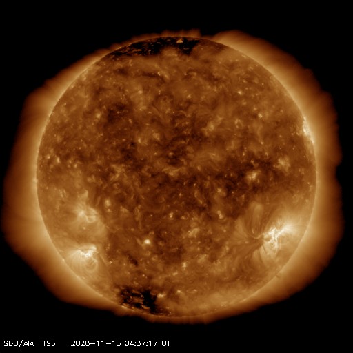 2020/11/12 12:38 C2.6の小規模フレアが発生しました。低速の太陽風が続いています。
